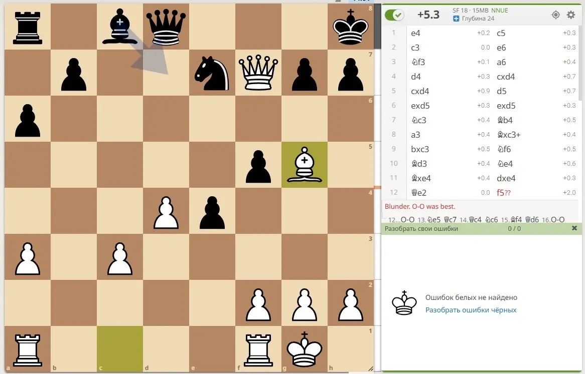 "Когда тебя называют ботом в доте, это оскорбление. Но нужно работать годы, чтоб тебя назвали ботом в шахматах" (с) Вариант Алапина в сицилианской защите. Из 18 ходов - 14 по первой линии (то-есть, шахматный движок походил бы точно так-же), 96% точности. ....И 100% вероятности, что оппонент подал на меня репорт за то, что я читак и подрубил движок %) . Бонусом - строчка "Ошибок белых не найдено".
