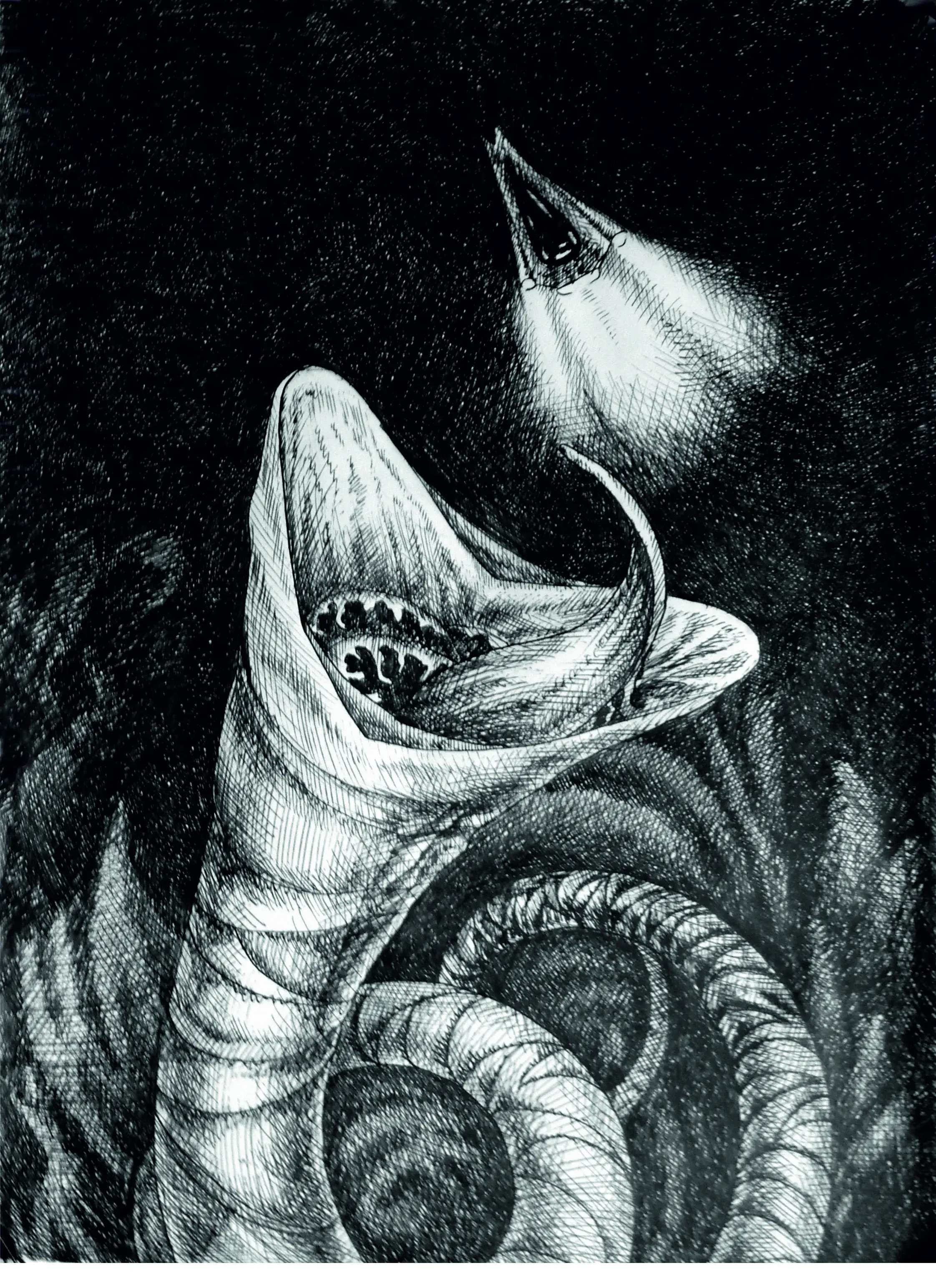 Когда-то очень давно, когда я ещё училась в колледже, я думала, чё б порисовать для себя, а не для колледжа, и нарисовала червя из Дюны