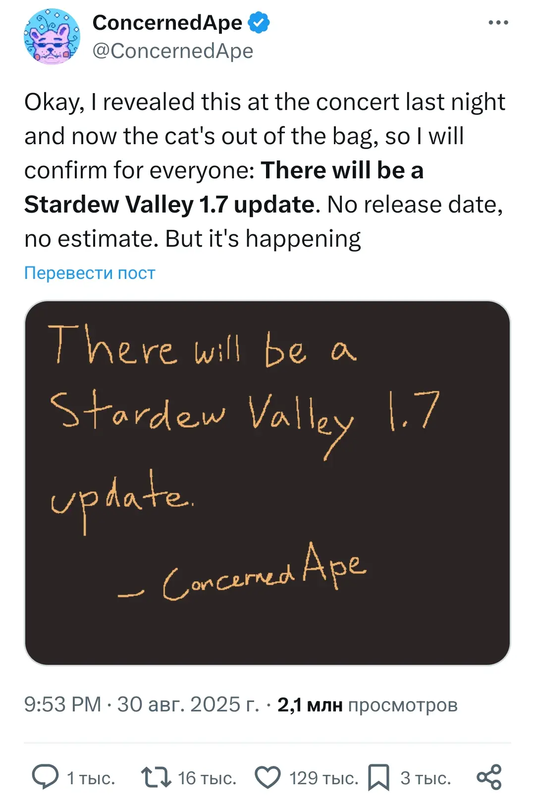 Эрик Барон отпраздновал юбилей Stardew Valley масштабным интервью, в котором признался, что разработка игры заняла почти 15 лет его жизни. Несмотря на 50 млн проданных копий, он по-прежнему считает себя «любителем» и стремится сохранять «инди-душу» игры.