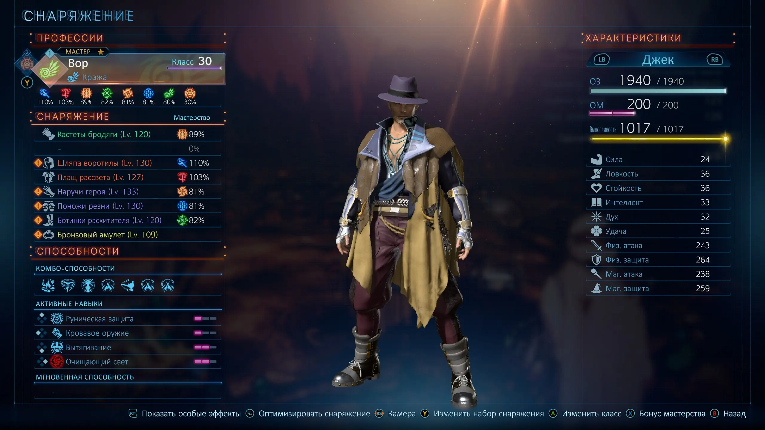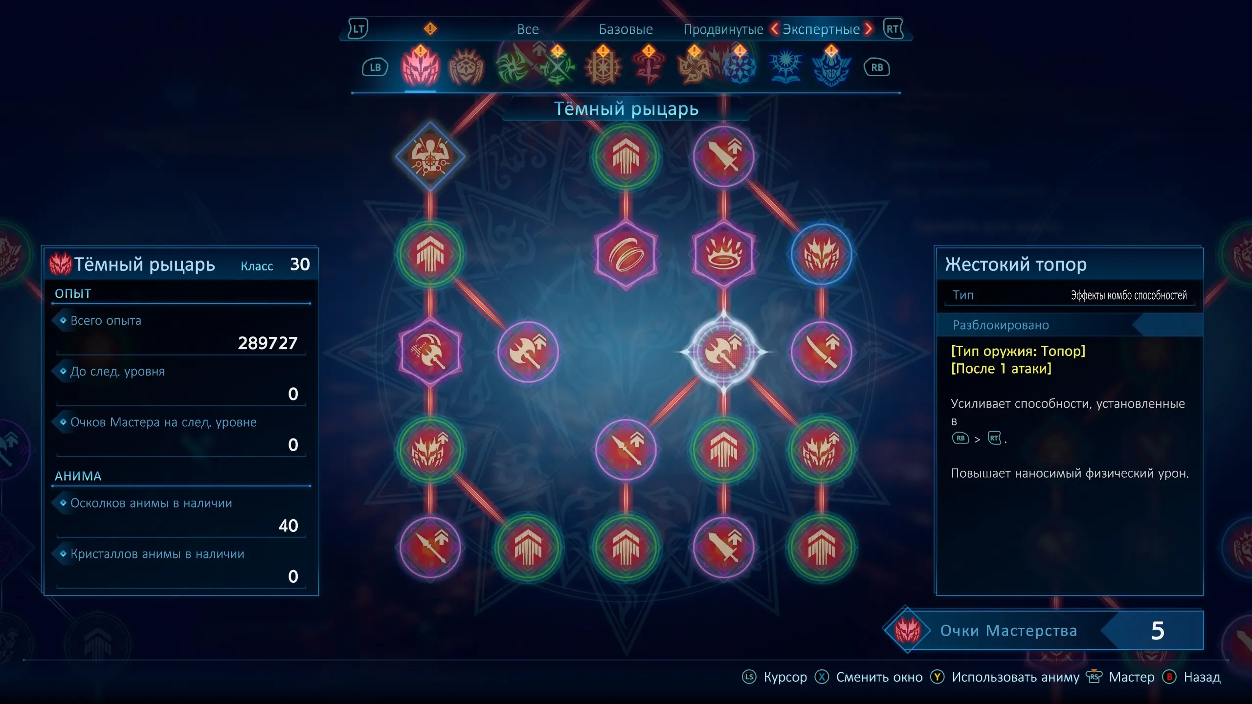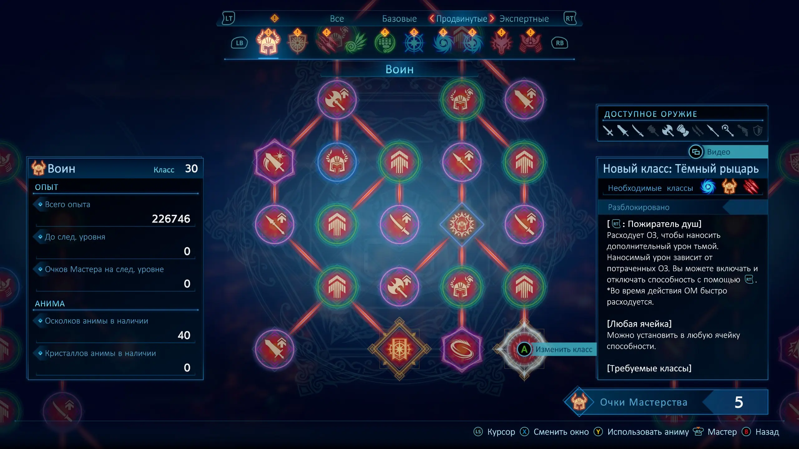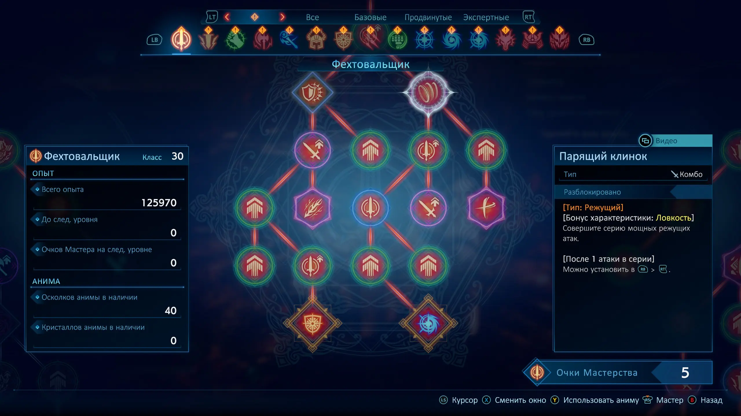 Довольно увлекательной получилась и система прокачки. К каждому виду оружия, привязана своя профессия. У каждой профессии есть особый навык, который можно вызвать как "с места", так и добавить в любое комбо. Есть, так же, и активное умение класса, которое нужно изучить в дереве способностей. В самой прокачке присутствуют как пассивные навыки, увеличивающие статистики или увеличивающие урон умения прикрепленного к определенному комбо, так и новые комбо умения, зачастую специфичные для конкретной комбинации. Но если пассивные улучшения привязаны к профессии, то вот активные, привязаны к оружию, и их можно использовать в любой другой профессии что используют одинаковое оружие, в зависимости от скейлов статов или уязвимости противника. А продвинутые и экспертные профессии оперируют уже определенным арсеналом.