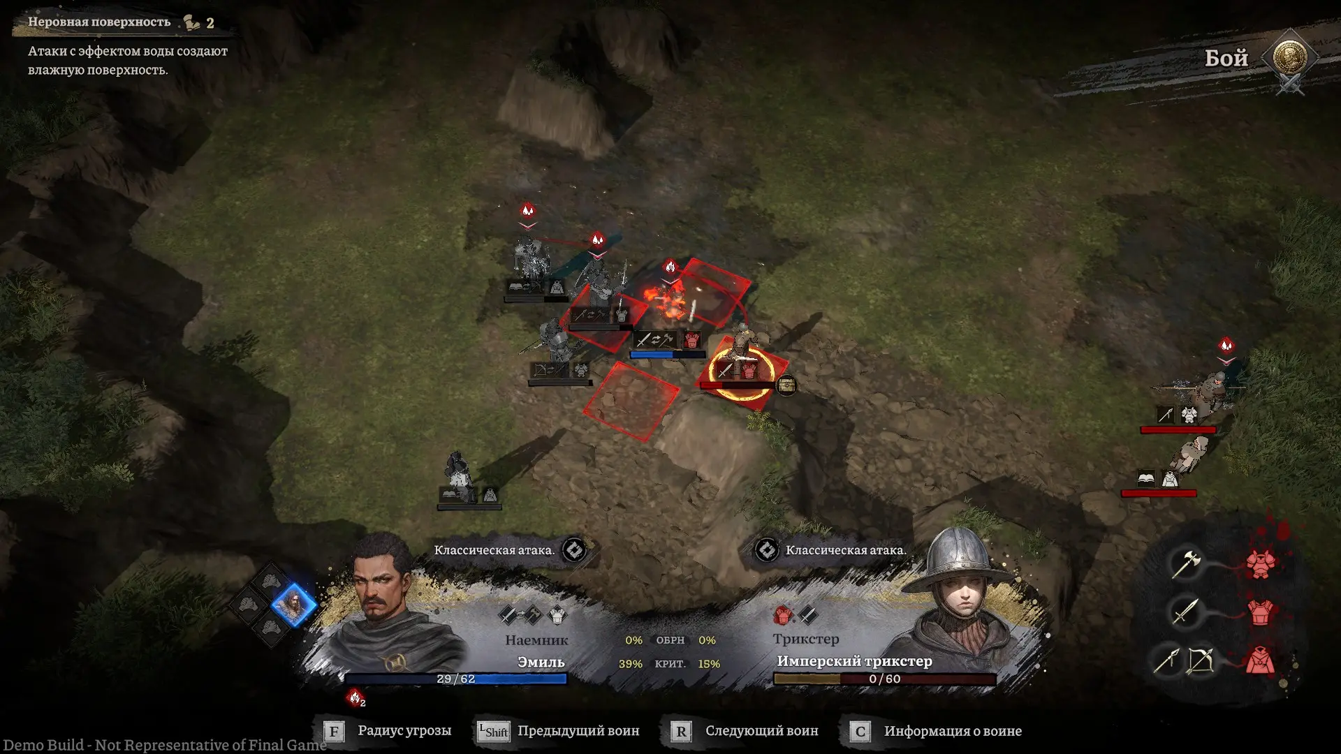Рогалик с выбором пути, боёвкой в виде пошаговой тактики и сюжетом, поданным визуальной новеллой. Не знаю, есть ли возможность романсить инквизиторшу (я был бы не против), но общаться в лагере и повышать уровень отношений точно можно. Нарисовано крайне приятно, а в диалогах есть автовоспроизведение, так что я бы прикрыл глаза на обилие болтологии – хоть и бесит – и, может быть, смирился бы с роглайтовой основой, но удар в спину нанесла… боевая часть. Она, во-первых, требует чересчур много кликов, даже обычную атаку нельзя нанести не прожав «Атаковать» в меню. Во-вторых, в игре используется тот совершенно идиотский тип боёвки, где область действия оружия вымеряется по клеткам. И она такая куцая, особенно у дальнобойного оружия и магии, что делает стрелков просто бессмысленными. А чтоб им не обидно было, и половину рукопашников тоже, потому что у них оружие бьёт по прямой – и если враг стоит наискосок, то всё, никак. То есть на первых порах, пока герои не обросли умениями, у нас геймплей сводится к мордобою стенка на стенку, потом, с прокачкой появляется какая-никакая тактическая глубина. А теперь, внимание! С чего начался разговор? Да, это рогалик, а в рогаликах происходит постоянный сброс умений и начало сызнова. То есть, стенка на стенку. И ну её нахер.