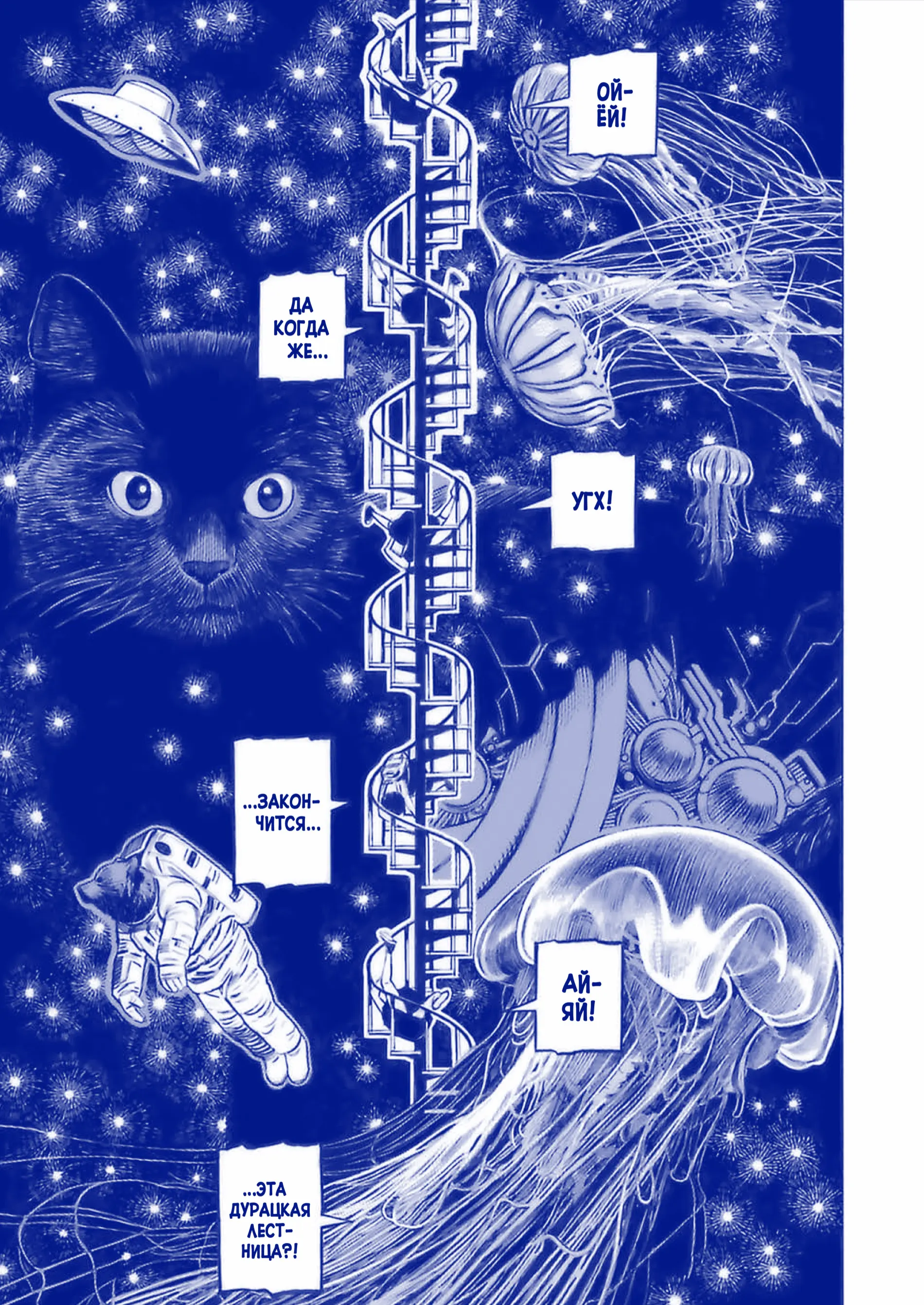 Вся эта глава рассказывает о том, какой же бардак творится в башке у мангаки. Кучу бессмысленных сюжетов, кучу всратых поворотов, бездна из придуманных, но забытых персонажей и киношных взрывов... во время ПМС... Что, нахуй я читаю?