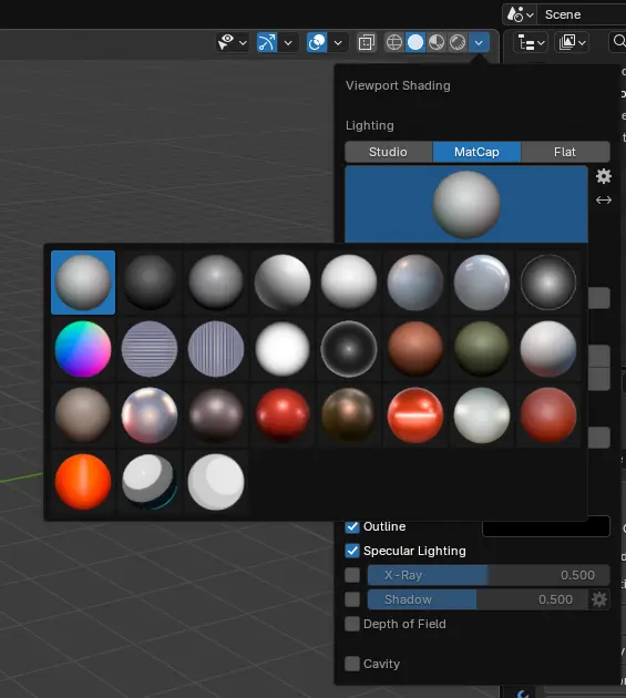 Установка маткапов и других ресурсов лучше провозить в новом пустом проекте, чтобы была возможность сохранить изменения в стартовом файле. Список маткапов доступен во Viewport Shading, расположенный в области заголовка. Для добавления своего маткапа нужно нажать на шестеренку справа, либо меню Edit - Preferences - Lights.