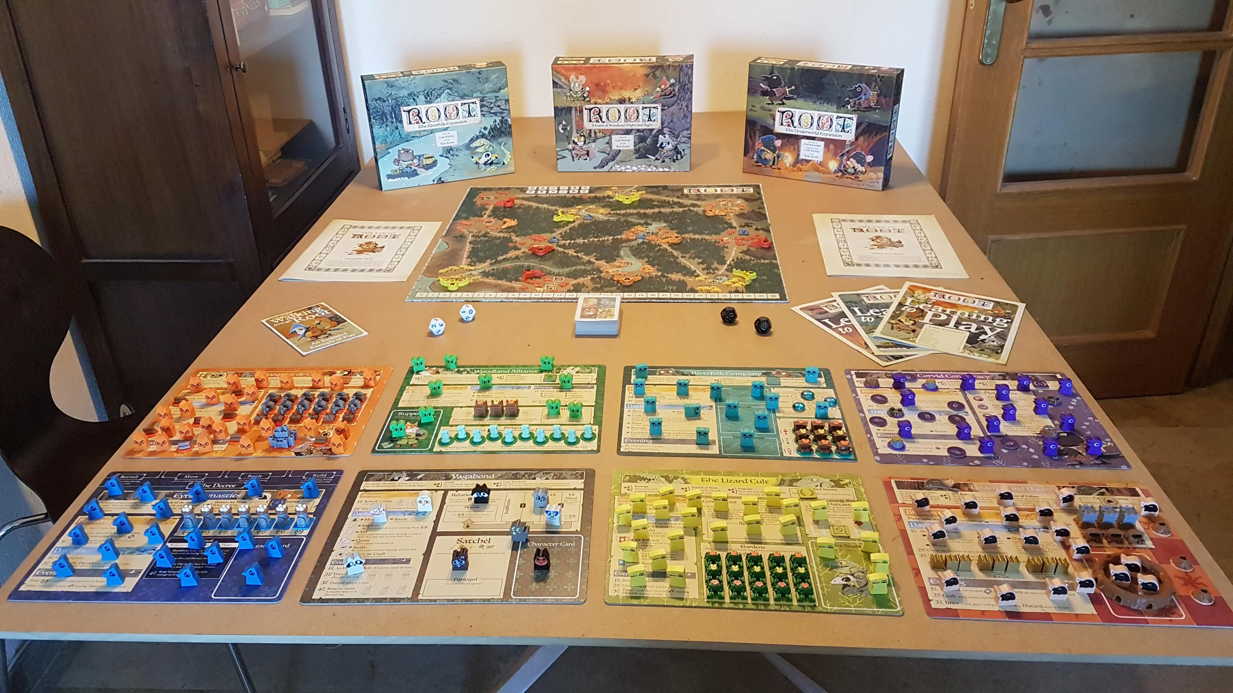 Что касается сложных игр – начал осваивать ROOT, как в дигитальной версии, так и на столе. Купил себе расширение с автомой («бумажным ИИ») - чтобы не зависеть от количества игроков. ROOT это варгейм, родственный риску, но гораздо сложнее – на классический риск там похожа только одна фракция, все остальные несимметричные и работают абсолютно по разному. Изобретатель ROOT Коул Верле – аналитик разведки и специалист по асимметричным конфликтам. Поэтому под капотом игры про милых зверюшек находится игра, изучить правила которой лишь чуть-чуть сложнее, чем степень по астрофизике.