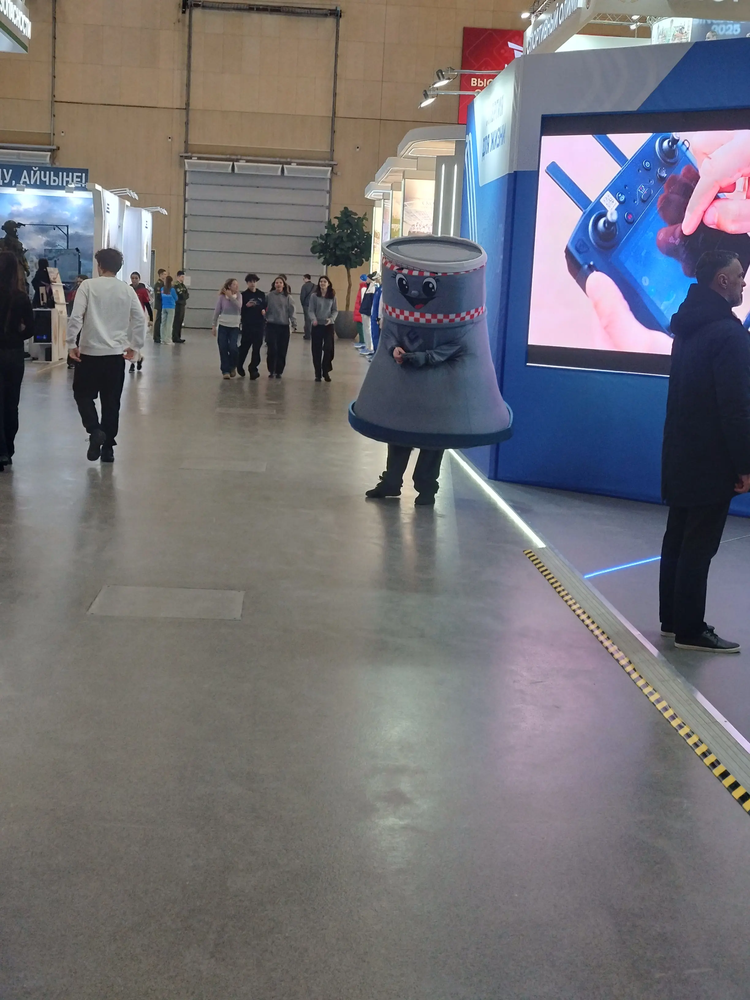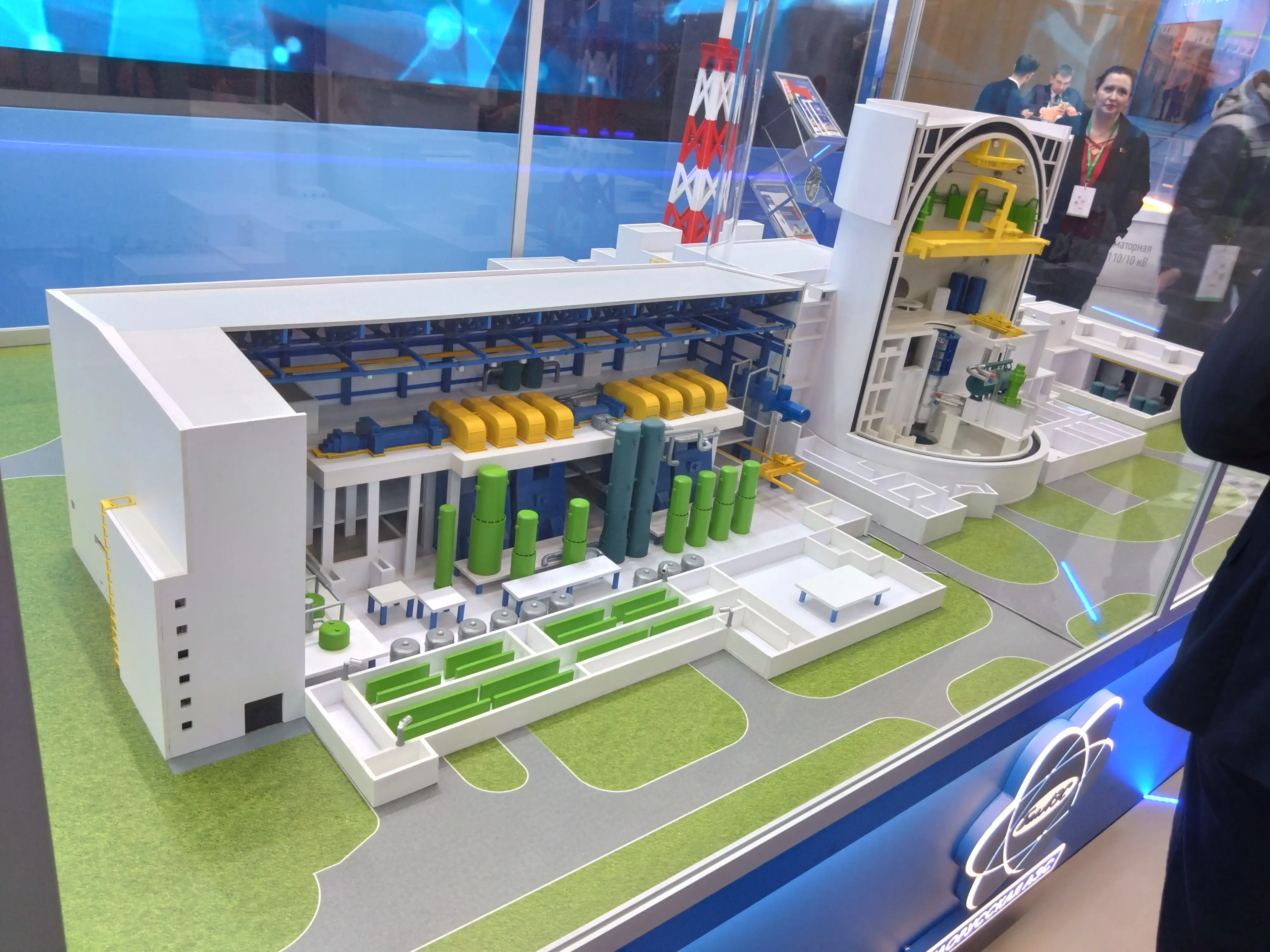 БелАЭС показывала модель реакторных зданий в разрезе, а рядом тусовался аниматор в костюме их маскота Нуклика (да, такой есть. Более того, брат мне рассказал что есть и маскот-барышня, звать Атомка)