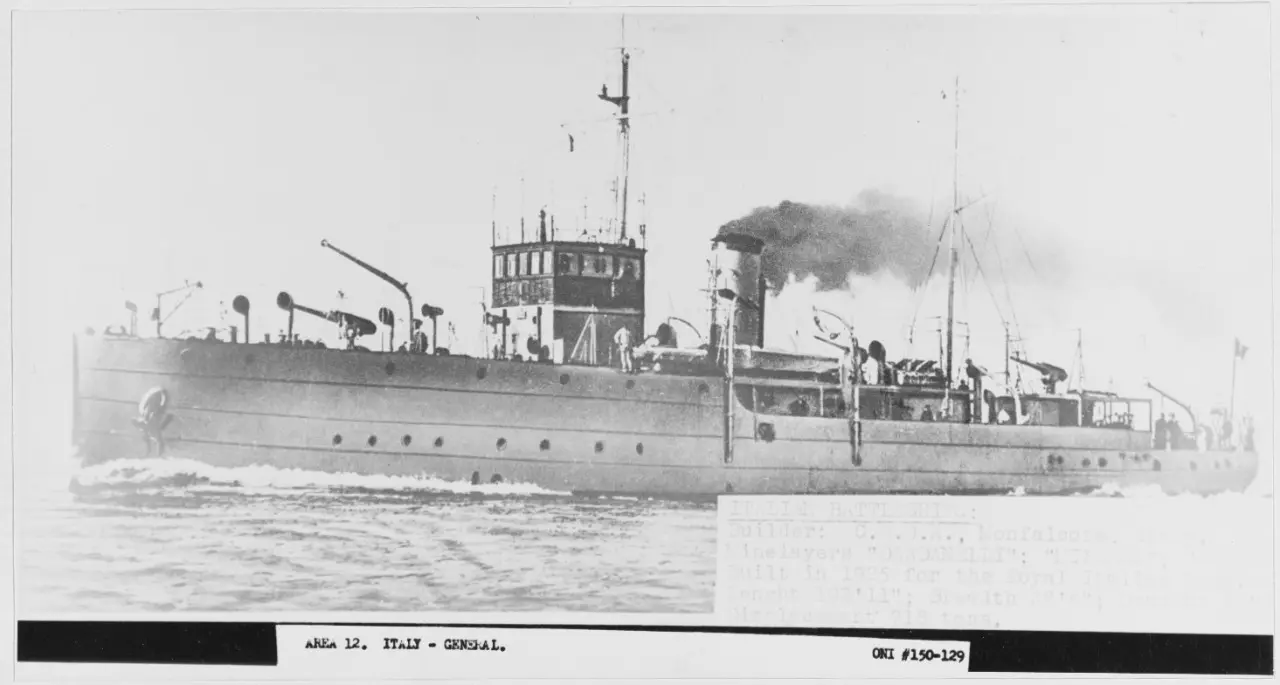И действительно - это был Azio, минный заградитель класса Ostia. Итальянцы строили свои малые заградители с элегантностью лёгких крейсеров - вытянутый силуэт, приподнятая палуба, аккуратная артиллерийская установка на баке. На дистанции их легко было принять за лёгкий крейсер. Но де Врис знал, что если крейсер выходит на линию боя, то минный заградитель держится тени.