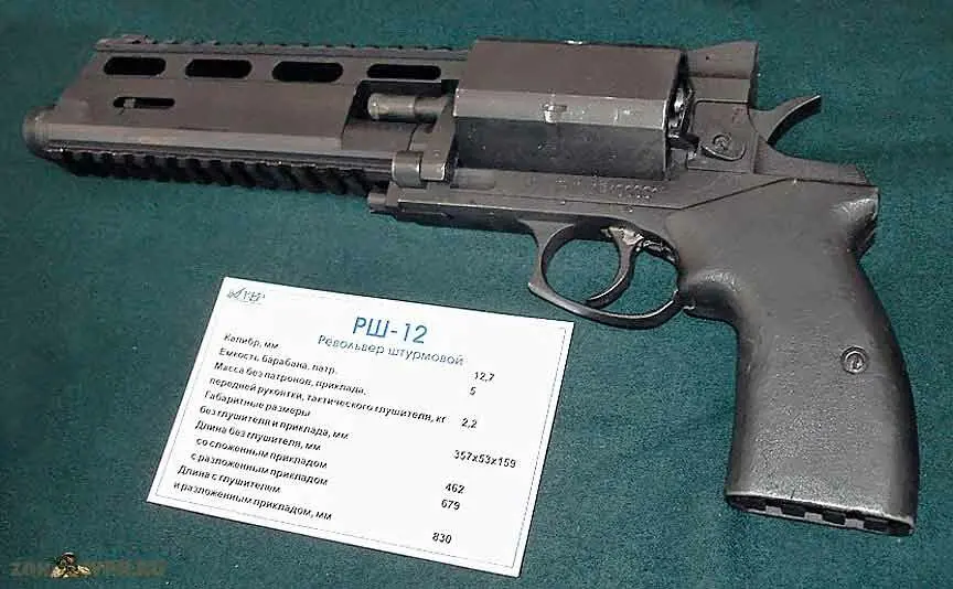 РШ-12 ствол менее медийный. Он был разработан в 2000 как побочный продукт разработки автомата АШ-12 и снайперки ВССК Выхлоп для конкурса ФСБ (выиграли тогда АС Вал и ВСС Винторез). РШ-12 поставлялся в спецподразделения, а ныне вдохновлял дизайнеров Capcom. Планки и в целом возможности модификации позволяют собирать из него настоящего Франкенштейна