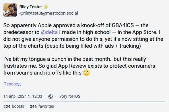 Но у Тестута остались обиды на отношение Apple к AltStore, альтернативному рынку приложений для iOS, который он пытается запустить в соответствии с новыми правилами ЕС. Это дало быТестуту законный способ распространять Delta, «продолжение» GBA4iOS, которое эмулирует многие классические консоли Nintendo на устройствах Apple.