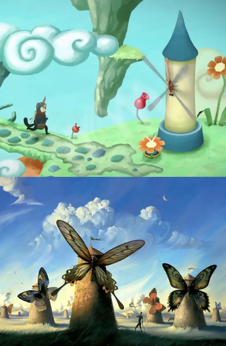 Например, мельницы-стрекозы из "творческой" части мозга смахивают на мельницы-бабочки Владимира Куша