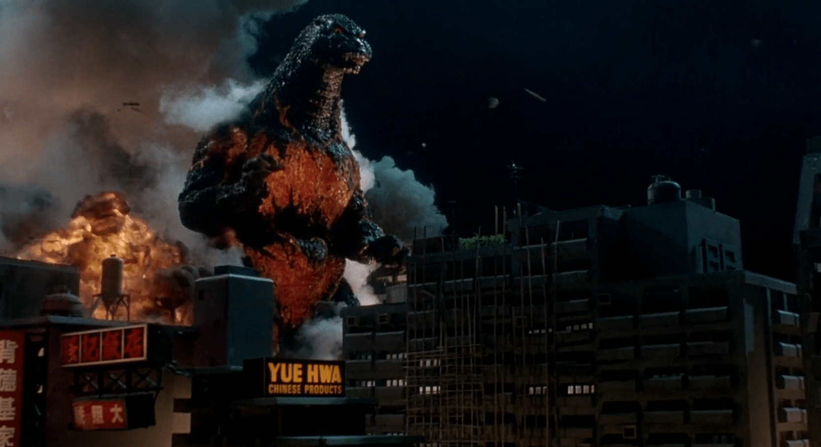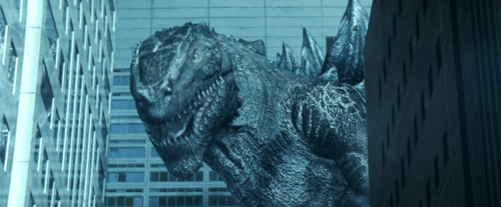 Годзилла тут страха как - то не внушает и намеренно выглядит, как - то нелепо, словно детская игрушка. Разрушаемость конечно неплохая и всё летит достаточно красиво (при японских бюджетах), но смотрится скучно и душит порой так, что Альберт Десалво начал бы завидовать (бостонский душитель, кто не в теме). А поскольку это сатира, естественно японцы не упустили возможности постебаться над американской администрацией, заодно напомнив тем, кто в курсе, о своих имперских амбициях и желании всех подмять под себя, пусть и в иронической форме (но мы то знаем).