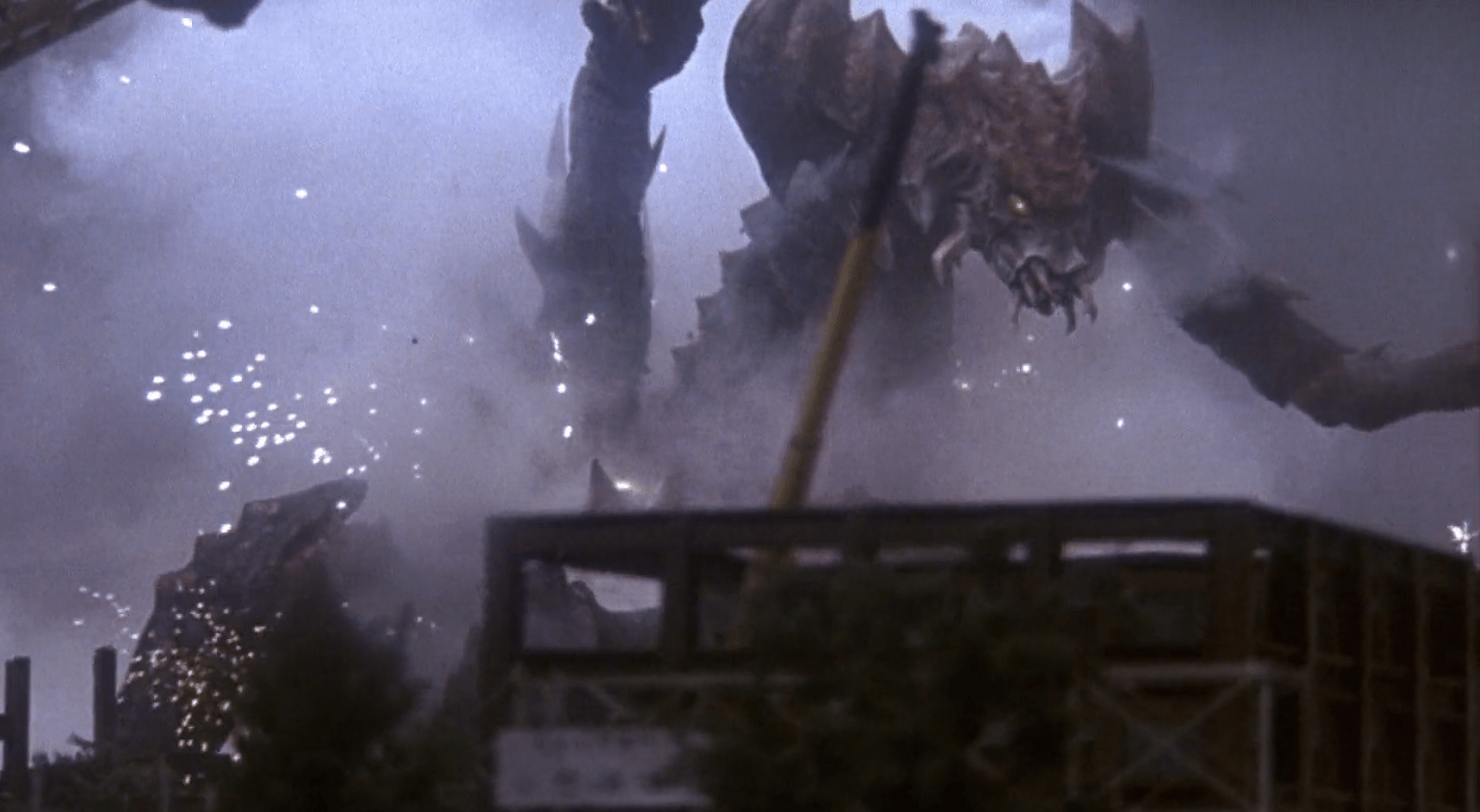 Второй после перезапуска 1984 - го года, фильм эры хэйсей (1984 - 1995), где не только спешили со спецэффектами, но и со сценарием тоже. Для начала - кино очень долго разгоняется и смотрится из - за этого нудно. Во - вторых - боевая часть сделана, явно впопыхах: если уничтожение города, ещё более - менее выглядит неплохо, то битвы между монстрами - откровенный трешак. Как и сценарий в целом. Зачем надо было это всё городить и куда торопиться - вообще не ясно, но сроки работы над спецэффектами были самыми короткими для серии - зря я этот момент пропустил, так бы подумал. Хотя, я бы не сказал, что спецэффекты тут сделаны совсем уж ужасно, напротив - они выглядят вполне нормально, а самих битв маловато, да и сами они очень вялые. Музыка тут тоже отличилась - её как - то чересчур много и она часто звучит не в тему, что сильно давит на уши.
