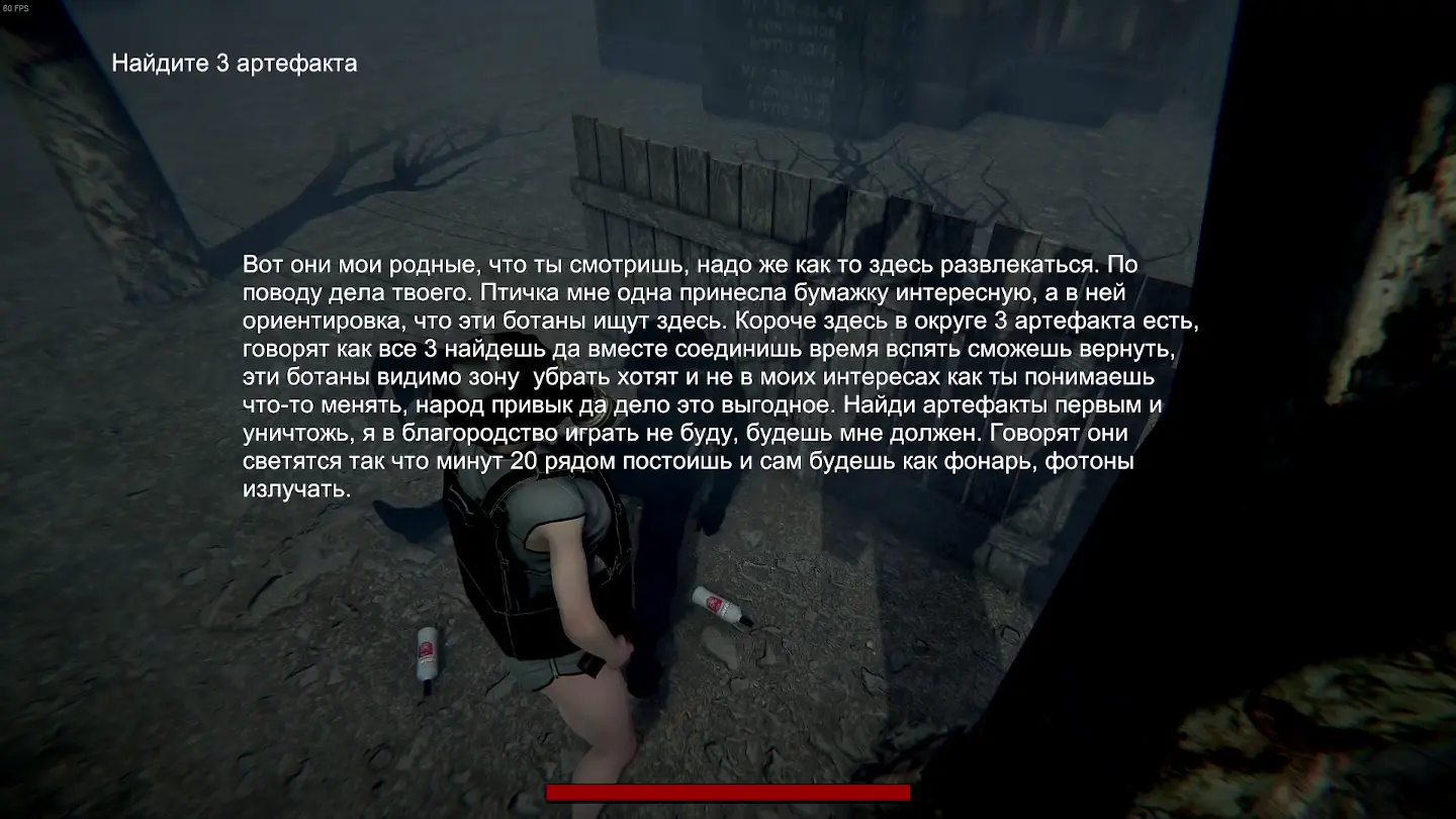 Далее он дает нам второе задание - найти артефакты. Я то один нашел видимо, но никакого уведомления, что я нашел артефакт нет.