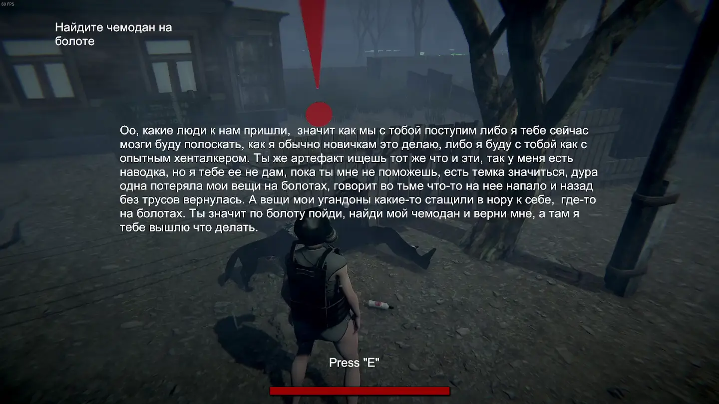 Первым делом говорим с Пидоровичем (не удивляйтесь), который просит найти свои вещи на болотах. Задача не сложная, болота найти не сложно.