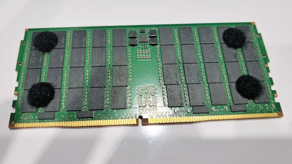 На GTC компания Micron продемонстрировала один "высокий" 256 ГБ DDR5-8800 MCRDIMM (на фото), но также планирует предложить MCRDIMM стандартной высоты для таких приложений, как серверы 1U. Оба 256-гигабайтных MCRDIMM основаны на монолитных 32-гигабайтных микросхемах DDR5, но в высоком модуле 80 микросхем DRAM размещены с обеих сторон, в то время как в стандартном модуле используются пакеты 2Hi, что означает, что они работают немного жарче из-за меньшего пространства для теплоотвода. В любом случае, высокий модуль потребляет около 20 Вт, что не так уж плохо, поскольку 128-Гбайт DDR5-8000 RDIMM от Micron потребляет 10 Вт при DDR5-4800.