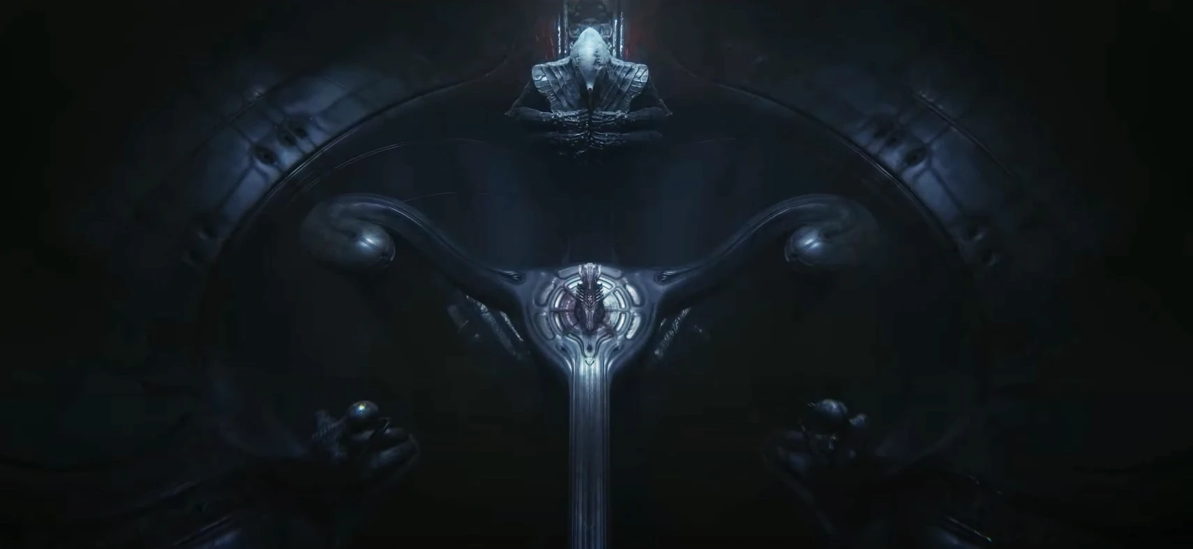 Кстати тут явно художники изобразили женскую матку, из которой рождается герой игры. Очень по Гигеровски !