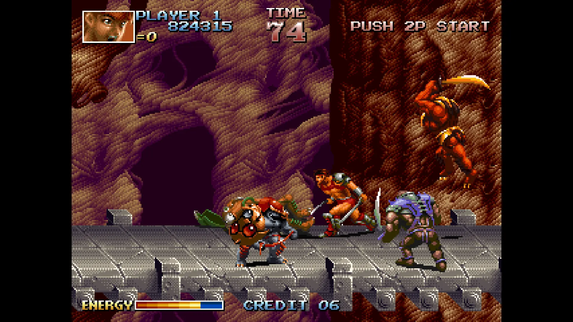 А это уже куда более типичный образчик игры для аркад — толстолобый битемап про полуголых фэнтезийных мужиков и полчища всевозможных чудовищ из секс-данженов. И, в целом, забавное развлечение на вечер. Забавное сейчас, когда мои Нумьи карманцы полнятся бесконечными наколдованными четвертаками, а так я редко когда и экран с врагами мог миновать, чтобы не закинуть ещё монету на радость мерзавцам, что делали столь неподъёмные для аудитории продукты. При том геймплей-то здесь примитивный даже по меркам жанра — ни комбо-ударов, ни волшебных способностей, ничего. Только иди вперёд и руби одной кнопкой.