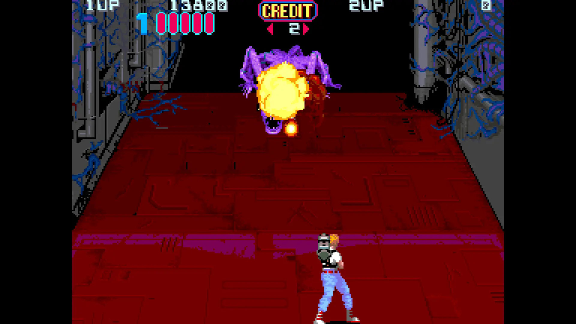 Игры для аркадных автоматов отложились в моём сознании как превосходящие современников как минимум в визуальном плане. Ну и как нарочито сложные, в чём я смог убедиться лично. Единственное, чем Aliens мне запомнится, помимо того, что выглядит она довольно отвратно, это весьма специфическим обращением с первоисточником. У нас тут, по идее, второй фильм, и концептуально достоверная заставка, в которой Рипли на всех парах въезжает в Hadley's Hope. А потом начинается какой-то бред из разноцветных ксеноморфов разных форм и размеров — есть и ползущие, и летающие штуки, и даже какие-то генокультисты из "Вахи" в меня гранатами кидаются. Ну а геймлей у всего этого представляет собой зажатие одной кнопки и хождение вверх-вниз для охвата наибольшей площади огнём из пушки. Тут нашлось место и такой же тщедушной битве с боссом, и псевдотрёхмерному уровню с обороной на крыше танка, но всё это так же пресно, уродливо и просто неинтересно.