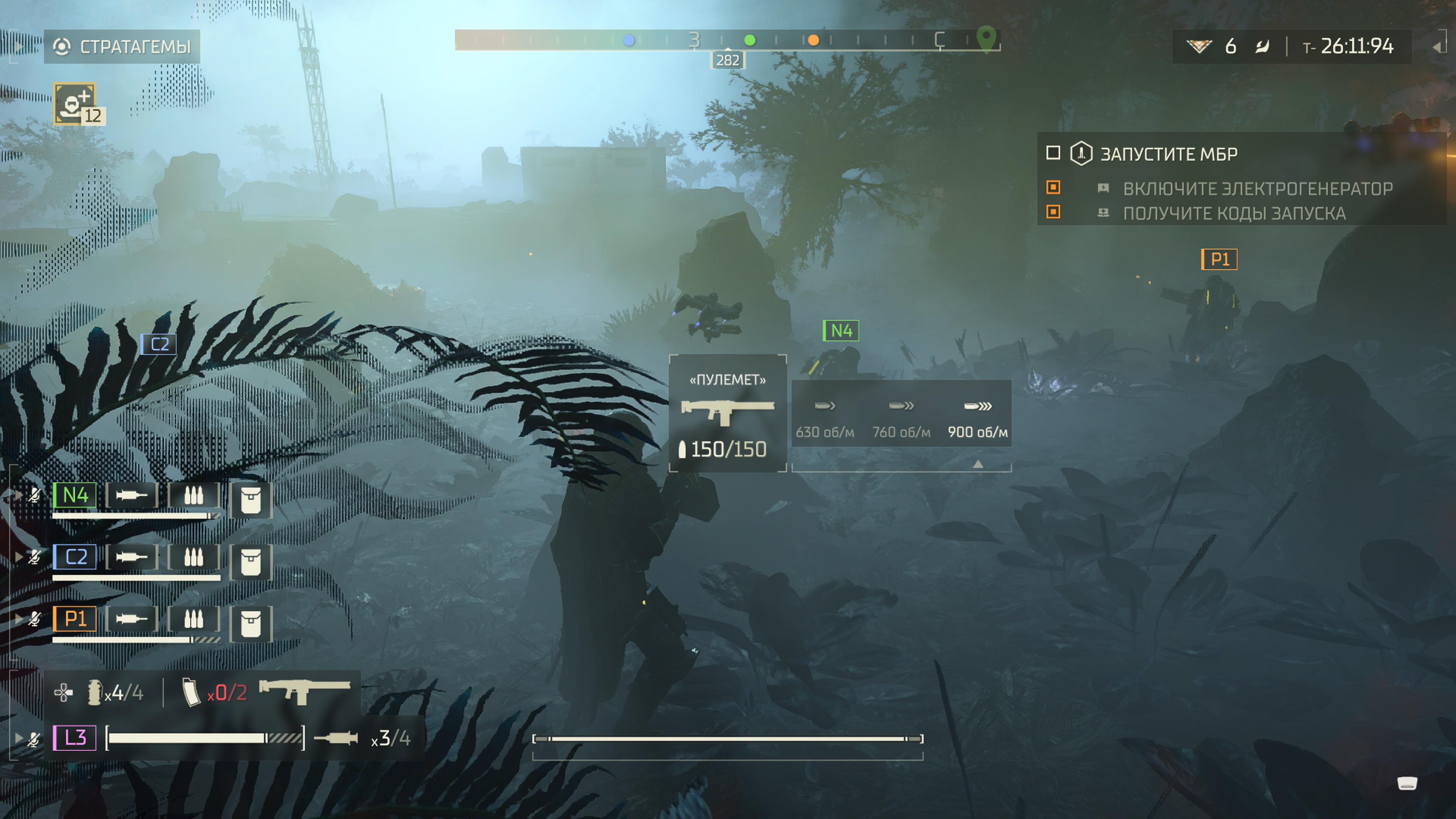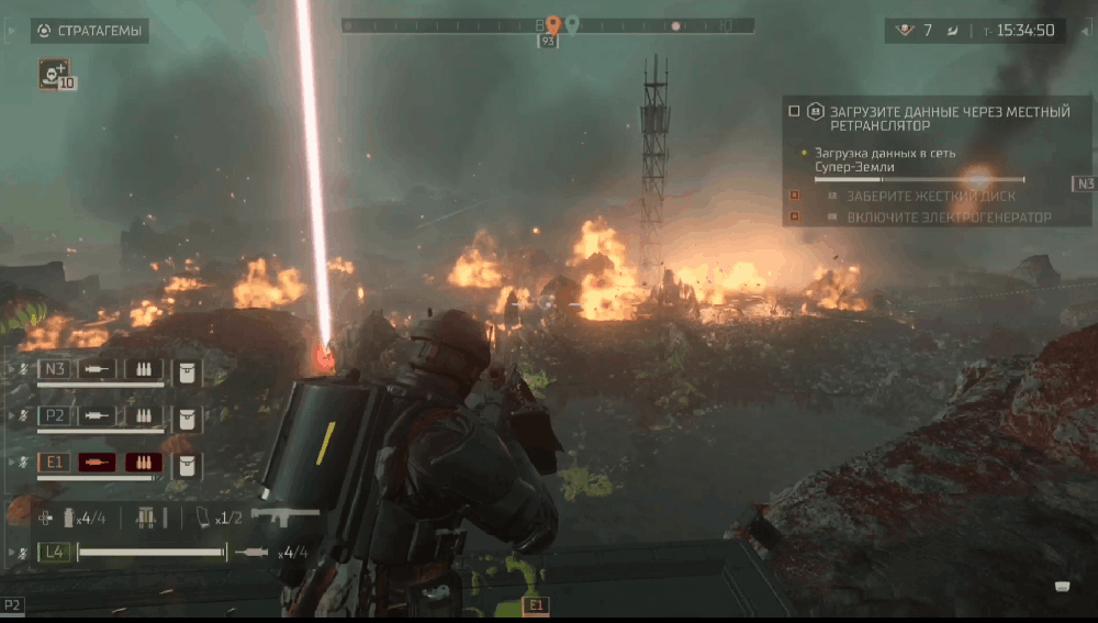 Оружие здесь делится на три типа: "основное", "пистолет" и "оружие поддержки" - получаемое при помощи стратагем.