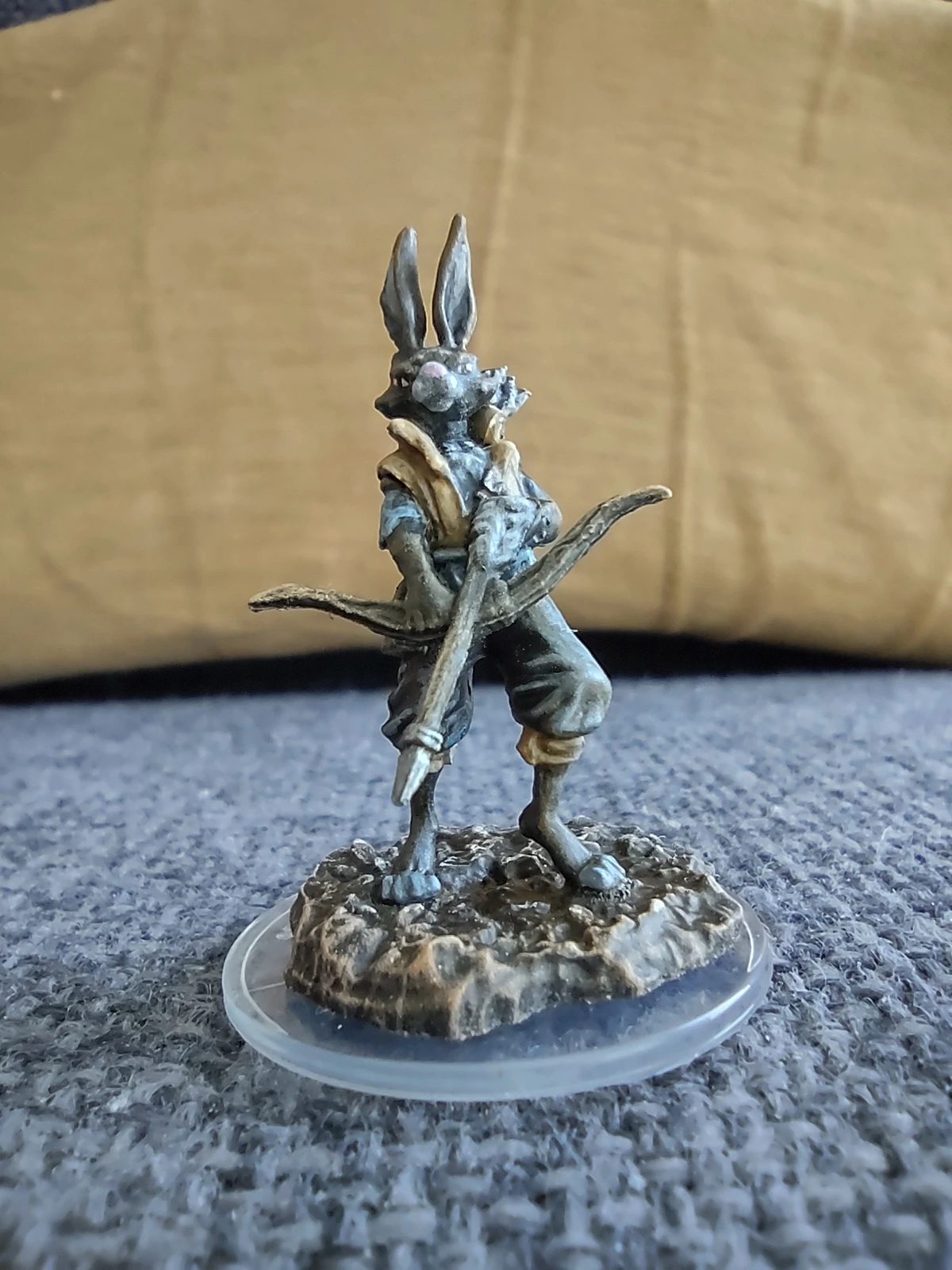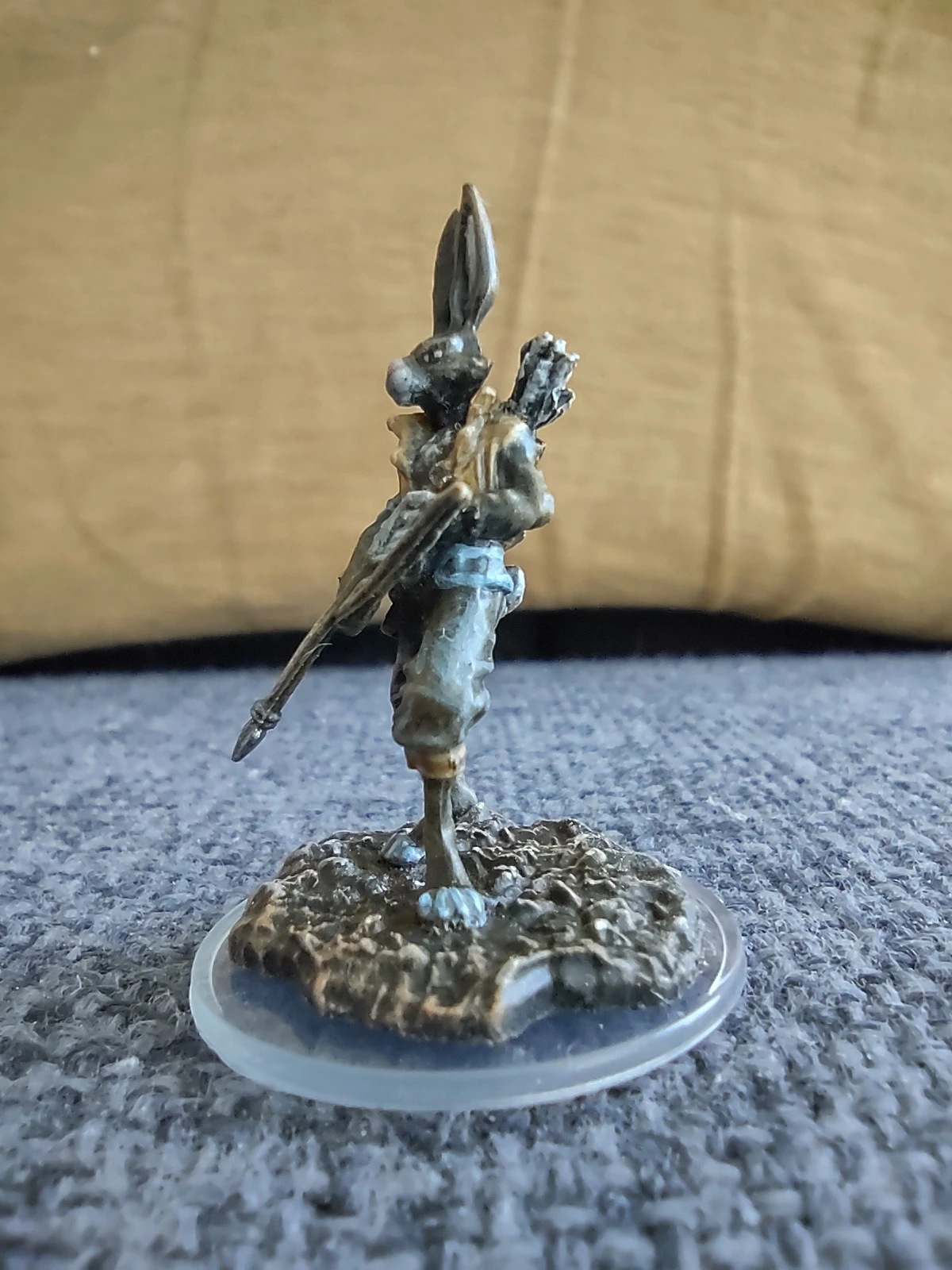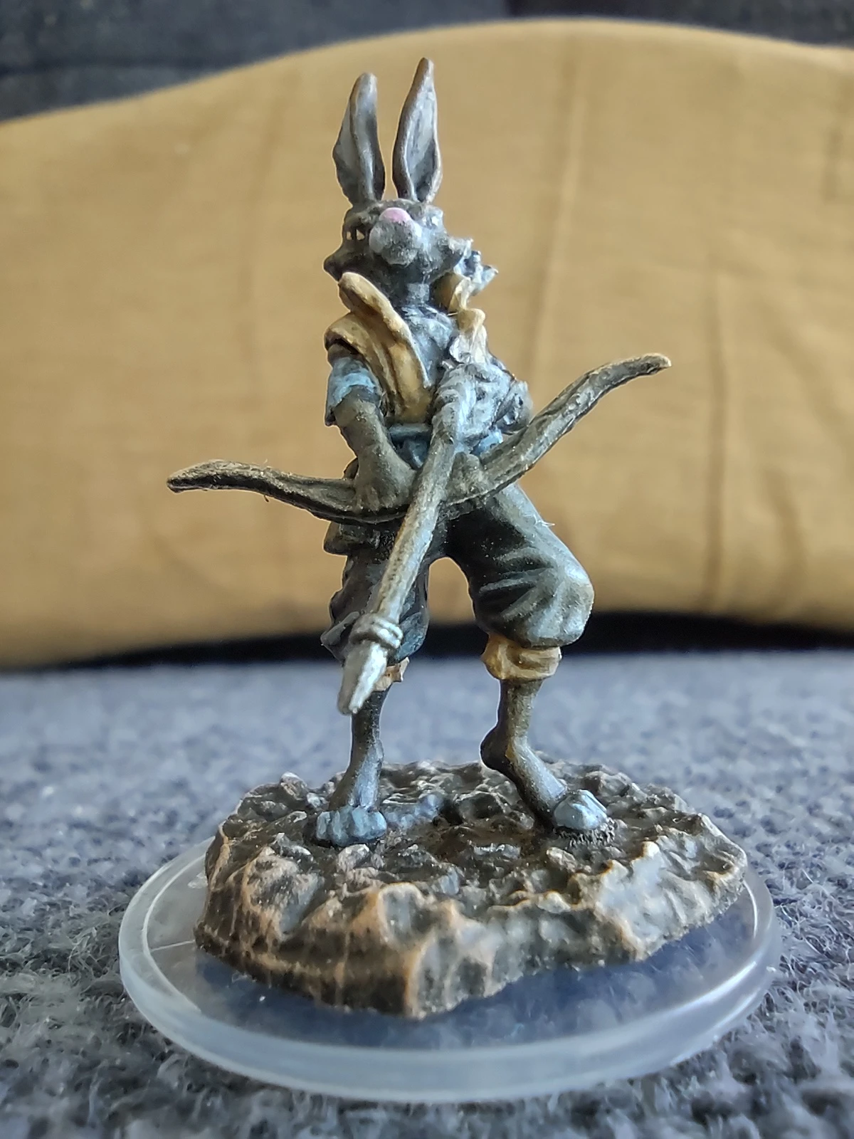 Ко второй половине месяца до меня наконец-то добрался ряд давным-давно лежавших в ожидании в другой стране моделей, в том числе очередной Paint Kit от Wizkids, на этот раз с Harengon-ом. Видеоинструкция по покрасу к нему оказалась... довольно любопытной: меньшее, чем в стандартном ките, количество красок (8 вместо 12) и небольшой размер модели попытались компенсировать активным использованием смешивания цветов и большей детальностью. В принципе, результат в итоге получился неплохой (особенно, учитывая традиционно низкое качество NMM-фигурок), хотя, ИМХО, они слишком налегали в процессе на использование не очень подходящей для настолько мелкой модели техники драйбраша...