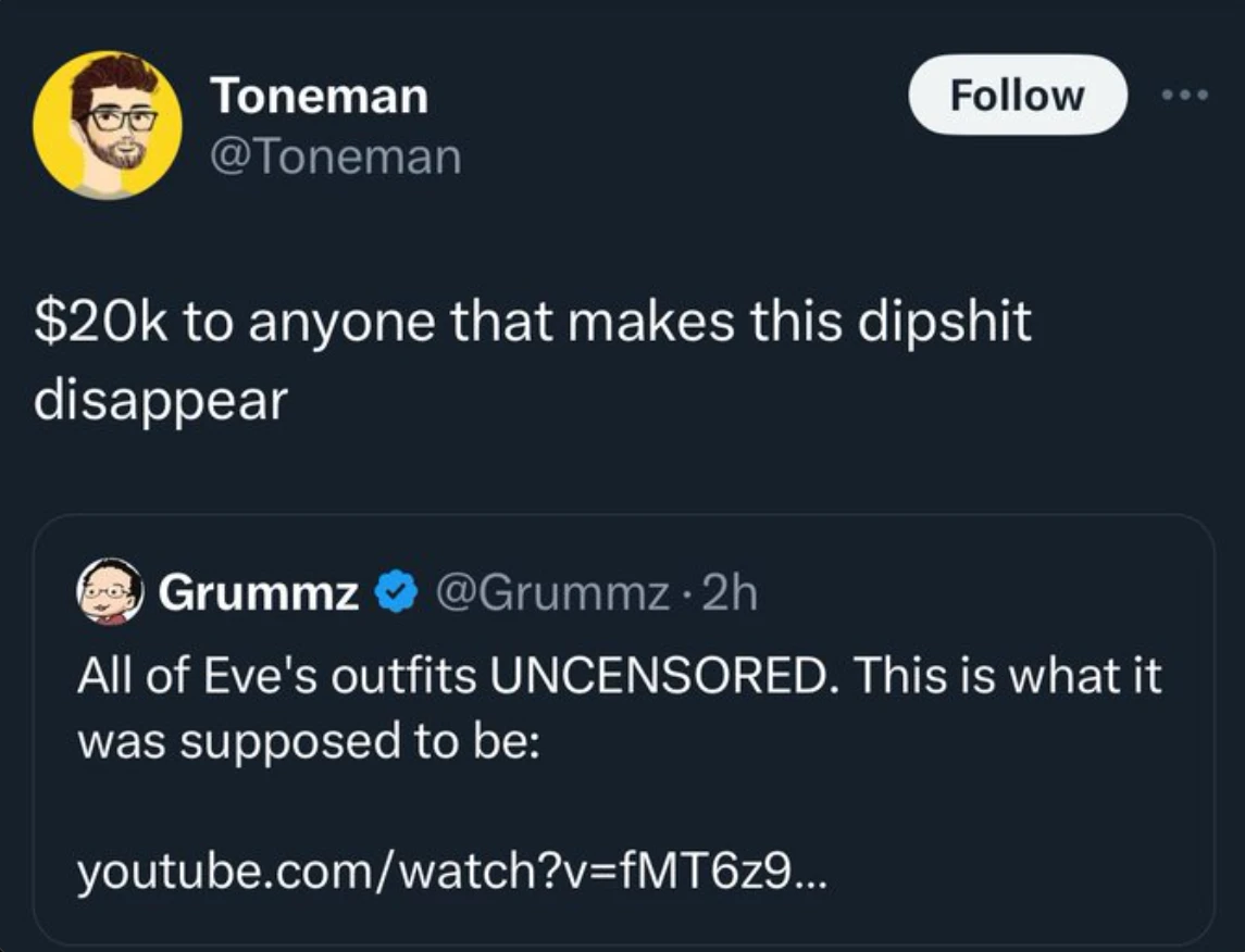 После чего, недавно на твиче, некая персона, которая является большой ценительницей цензуры и одновременно завлекает своих симпов на стримы выменем??, назначает награду за его голову в 30к ?