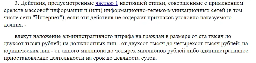 На самом деле, 100 тысяч рублей, ибо в нашем случае такое деяние осуществляется с применением информационно-телекоммуникационной сети "Интернет", что является специальным составов с увеличенным размером ответственности.