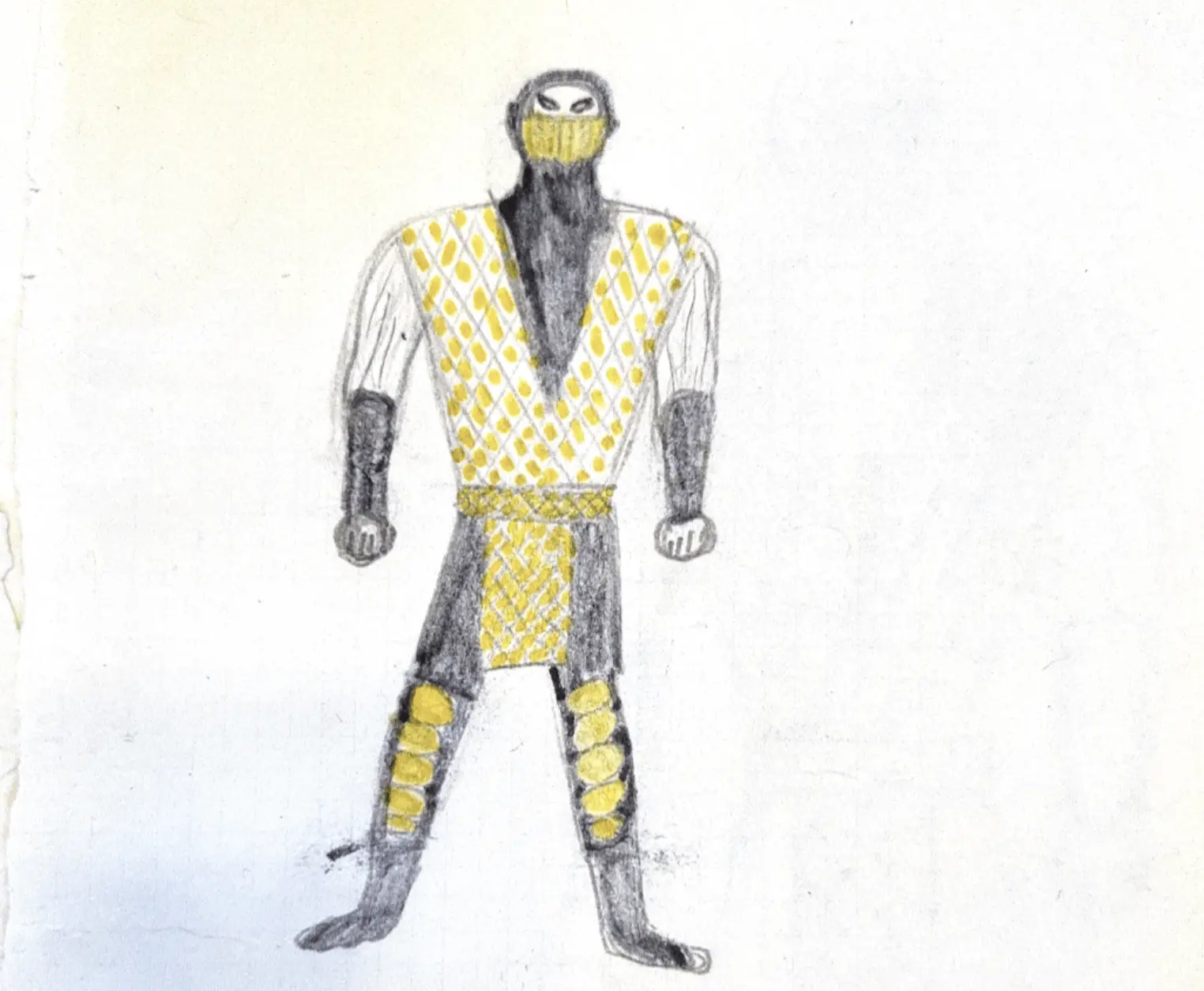 Классный Скорпион, согласитесь? Хотя он и не выглядит столь угрожающе, как в играх или фильмах. Подобные художественные произведения моего детского сознания ложились на бумагу в далеких-далеких временах при помощи карандашей, фломастеров и гелевых ручек. И все в надежде хоть немного приблизиться к таинственной серии Mортал Kомбат.