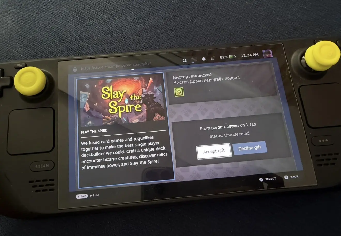 Я там замазал акк отправителя, а то вдруг че. Кстати все еще готов получать подарки https://steamcommunity.com/id/lemon5ky/ 🎁 Ну или просто в друзья добавляйтесь. Будем вместе в марвел играть