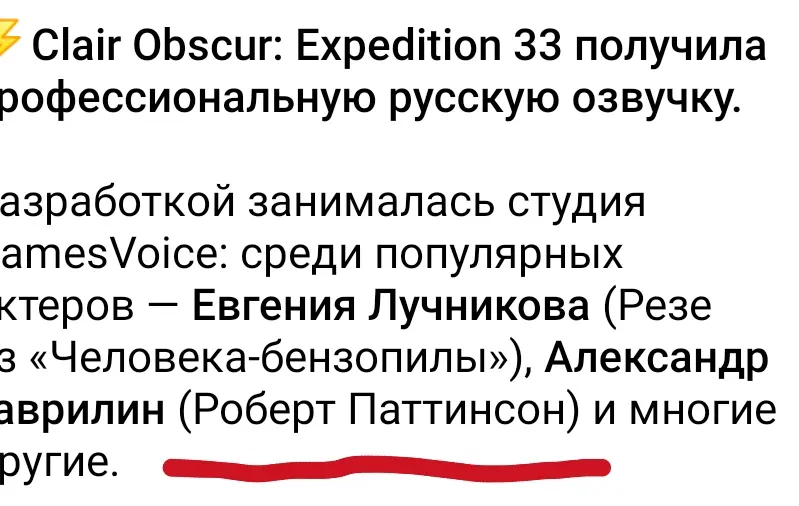 Игры года, по мнению альтернативно развитых людей, могут не только вызвать у вас игровую импотенцию, но и лишить смысла жизни. Я хотел пройти Expedition 33, ради Роберта Патиссона, которого по чудесному совпадению озвучил именно наш русский Роберт Паттинсон, его официальный голос. Я терпел игру только ради него, мне нравился персонаж Гюстав, но в конце первого акта, (а всего их три) Патиссон умер, и я почувствовал что меня лишили единственного что удерживало меня от удаления игры с самого начала...